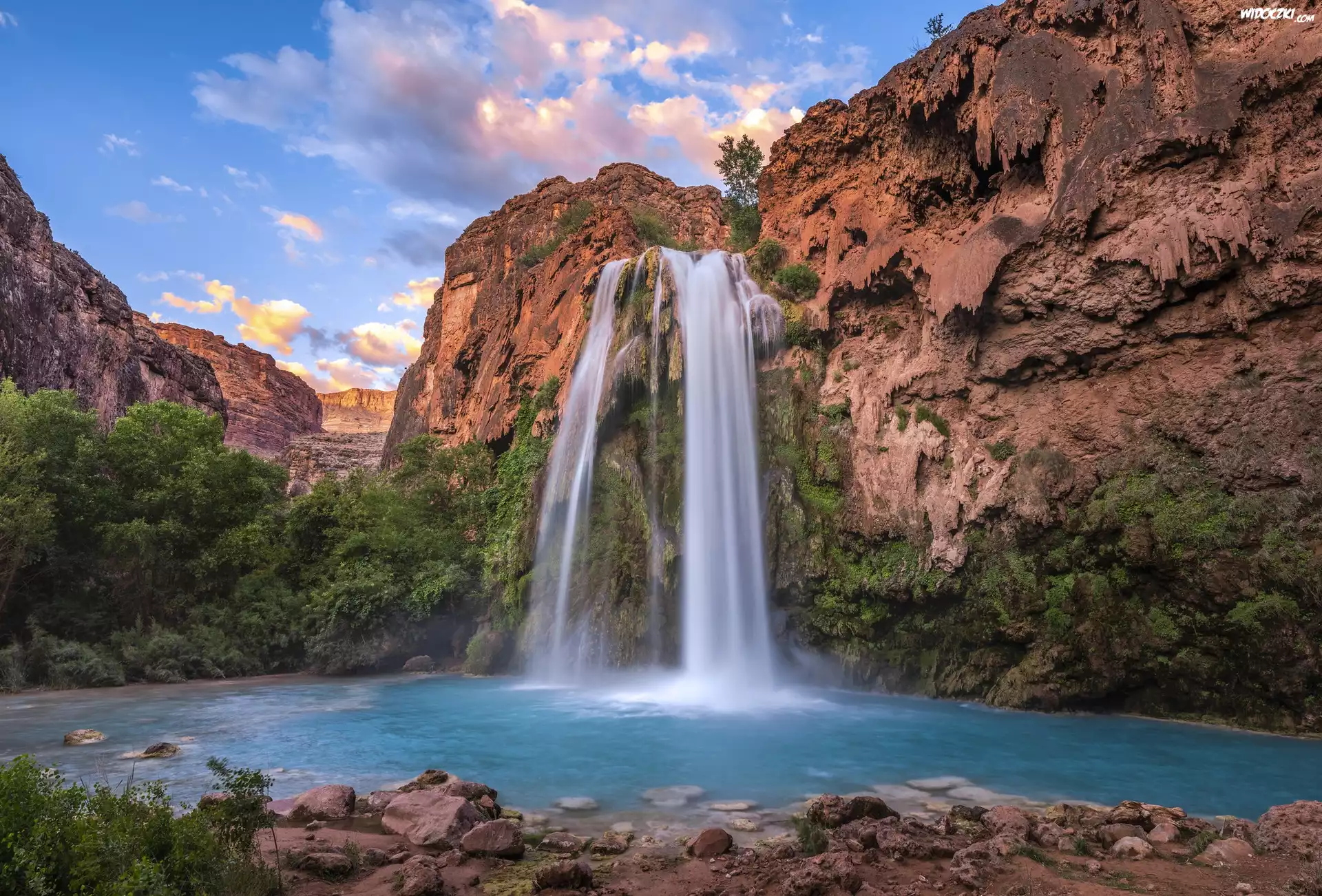 Góra, Skały, Wodospad, Havasu Falls, Arizona, Stany Zjednoczone