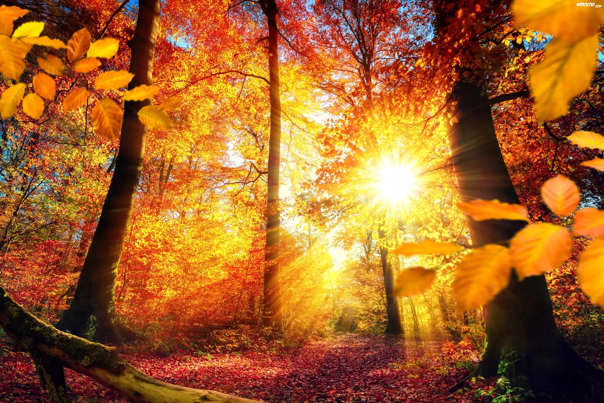 Zdjęcia, Złota, Jesień, Las, Promienie słońca