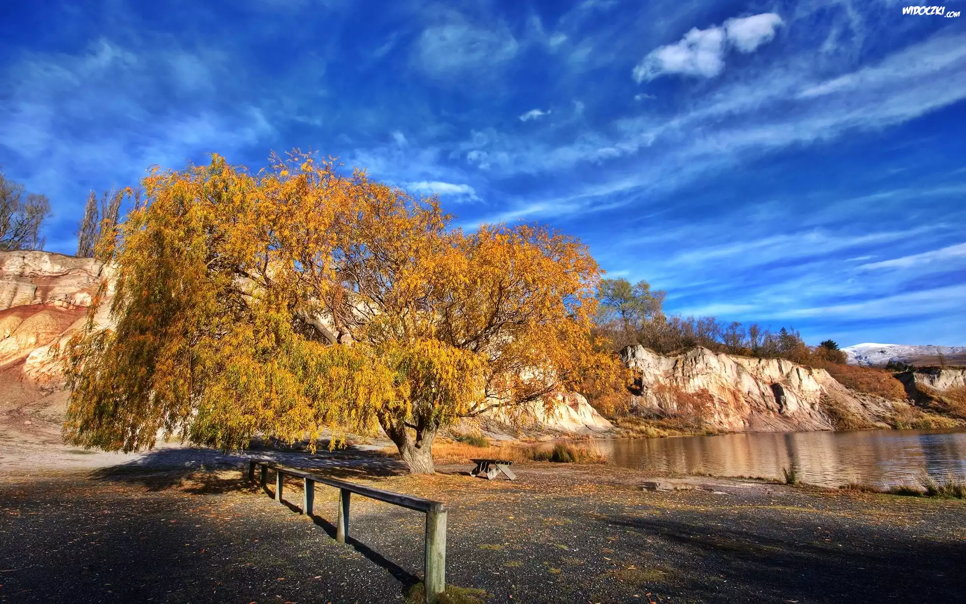 Zdjęcia, Złote, Drzewo, Woda, Skały