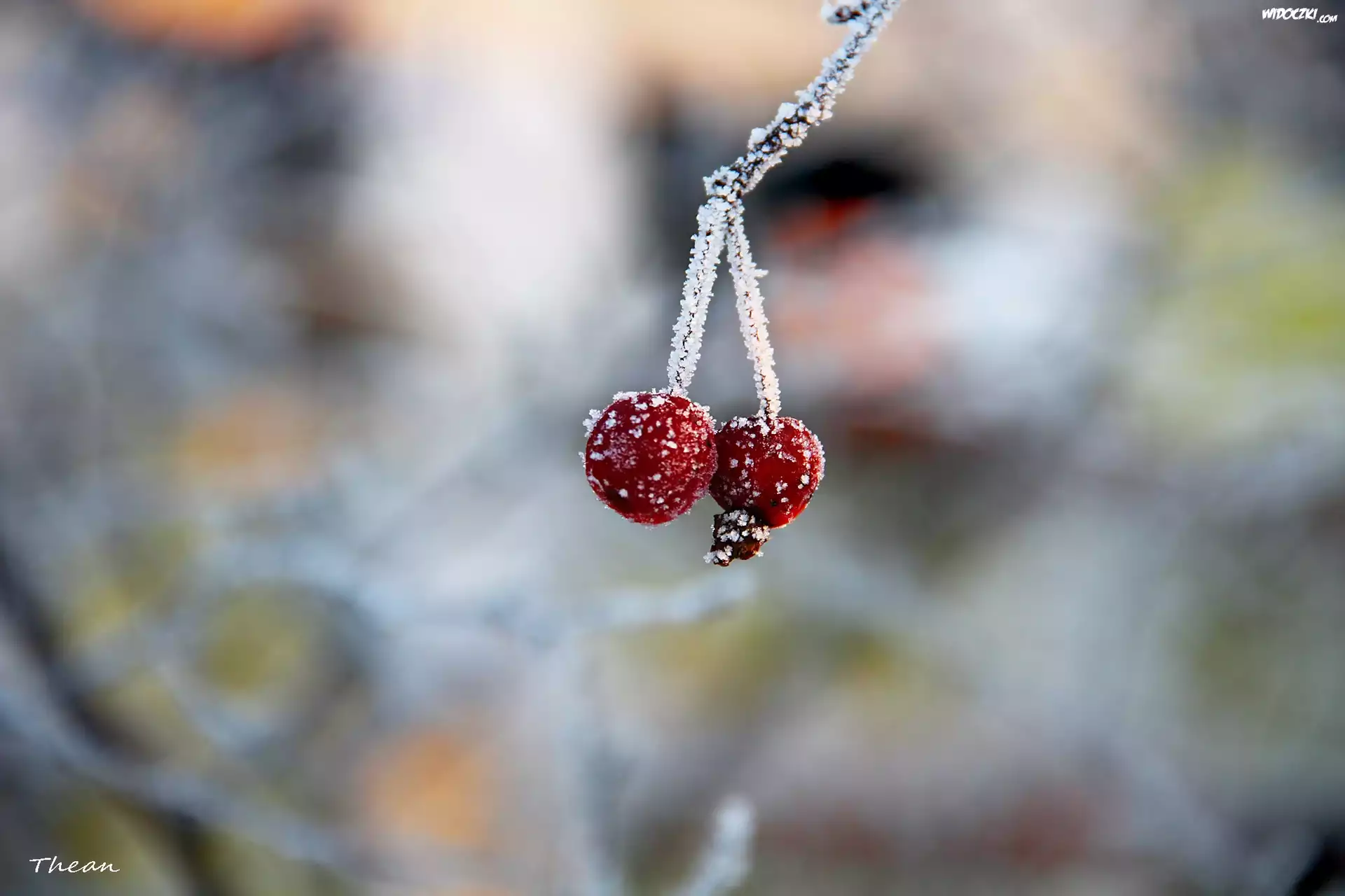 Zdjęcia, Zmarznięte, Jagody, Gałązki, Mróz