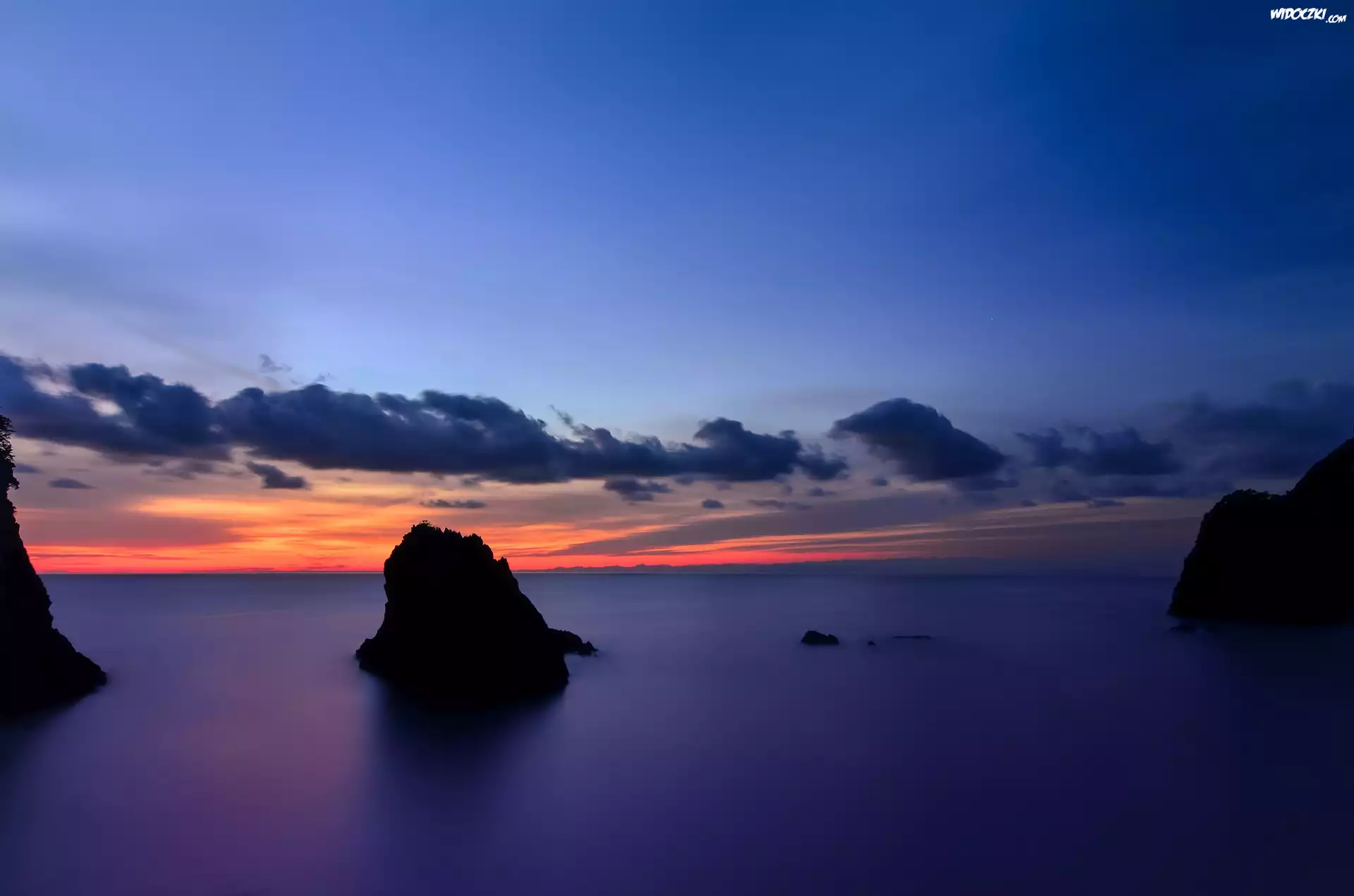 Zdjęcia, Zmierzch, Chmury, Morze, Skały