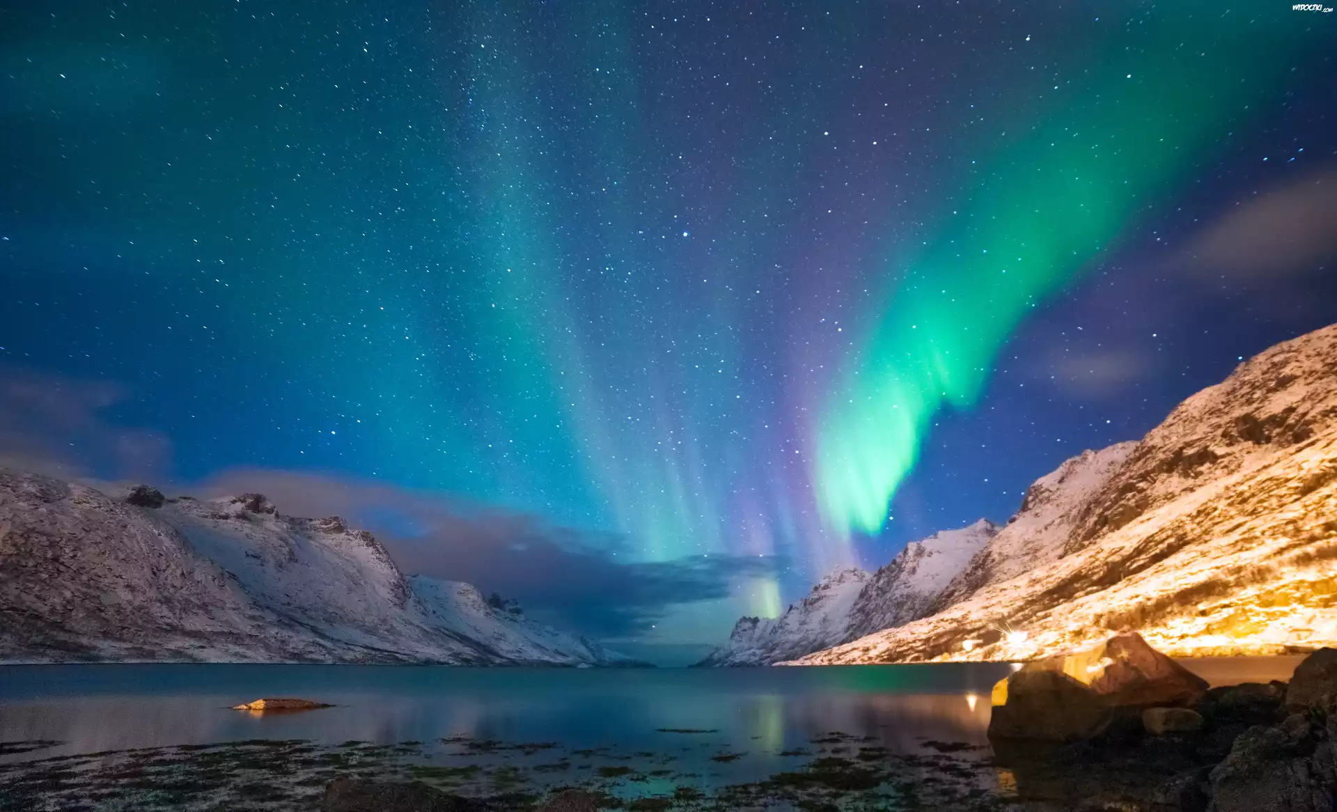 Zdjęcia, Zorza, Polarna, Góry, Morze