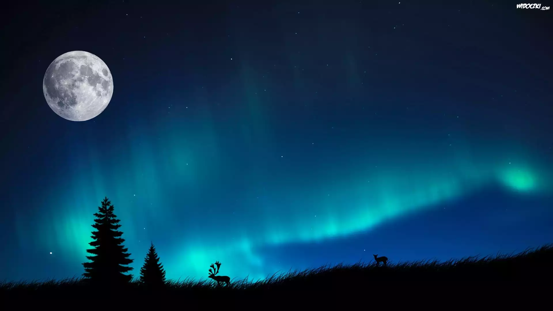 Zorza, Polarna, Księżyc, Jeleń, Łania
