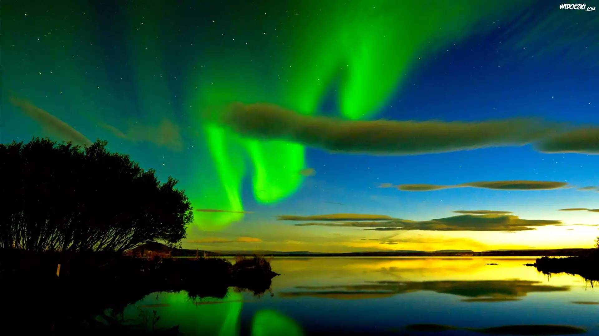 Zorza, Polarna, Jezioro, Niebo