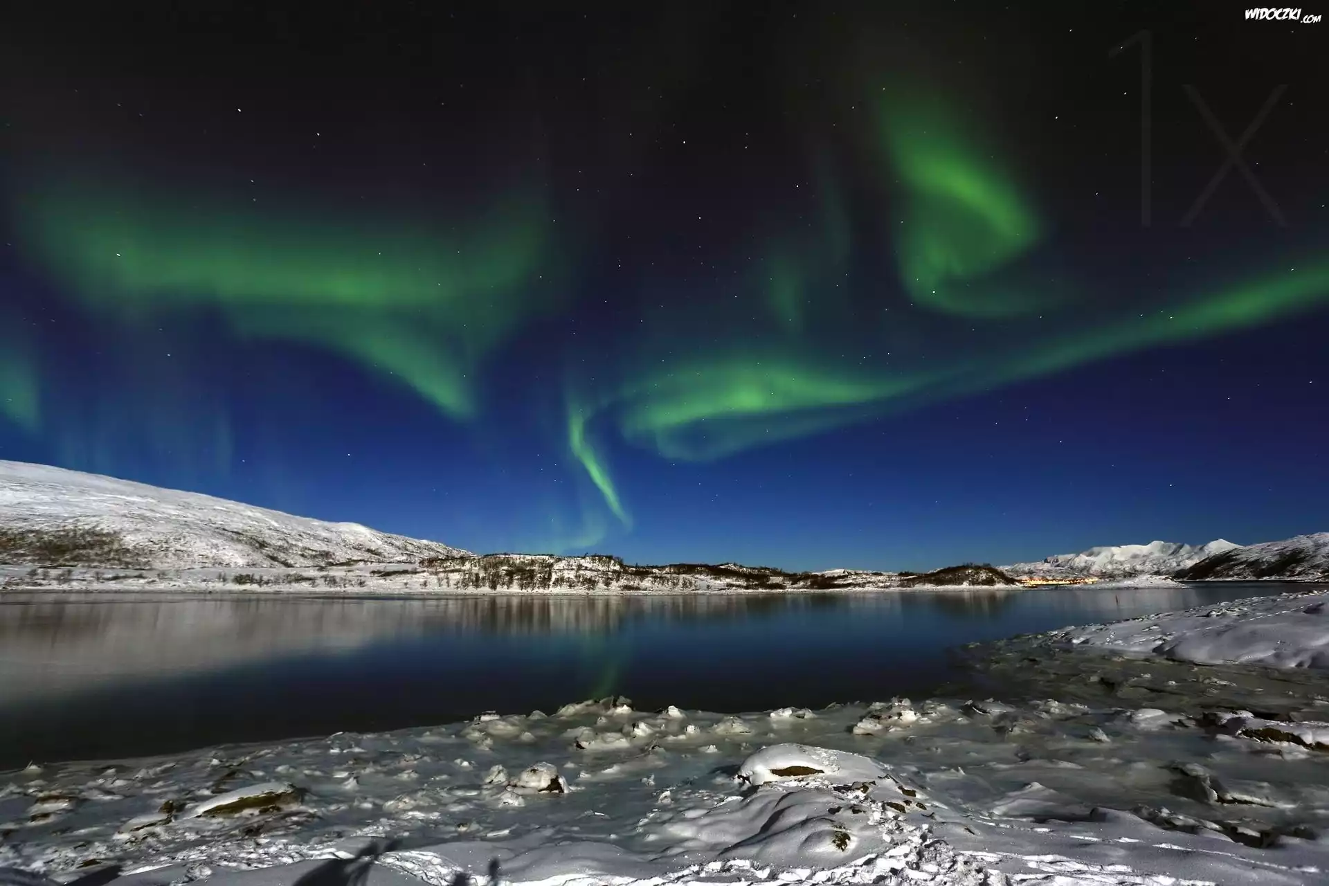 Zdj臋cia, Zorza, Polarna, Jezioro, Zima