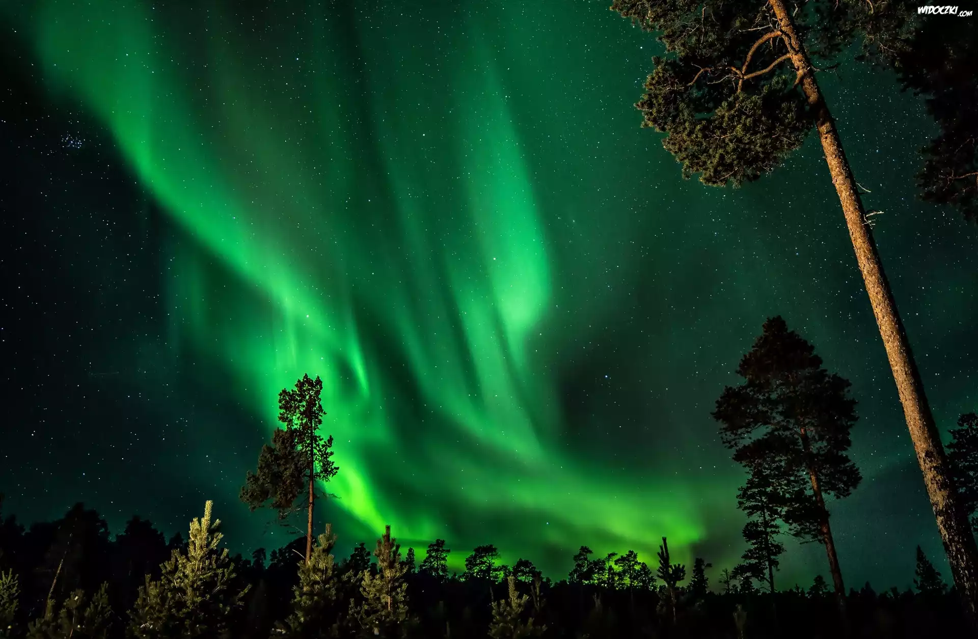 Zdj臋cia, Zorza Polarna, Las, Noc