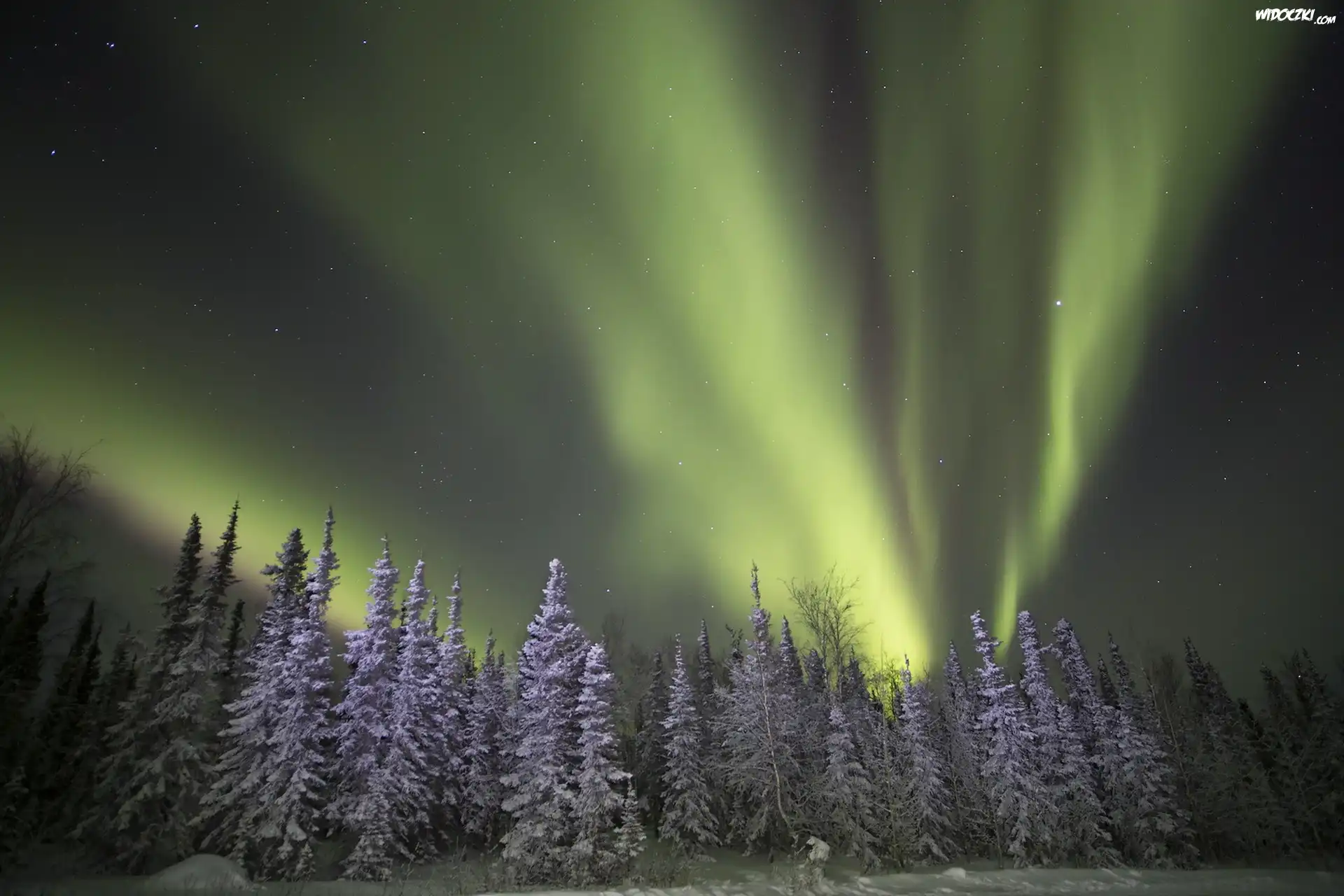 Zdjęcia, Zorza polarna, Las, Zima