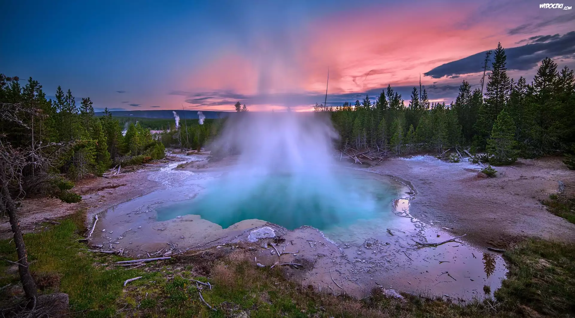 Zdjęcia, Stany Zjednoczone, Stan Wyoming, Park Narodowy Yellowstone, Gejzery, Gorące źródła