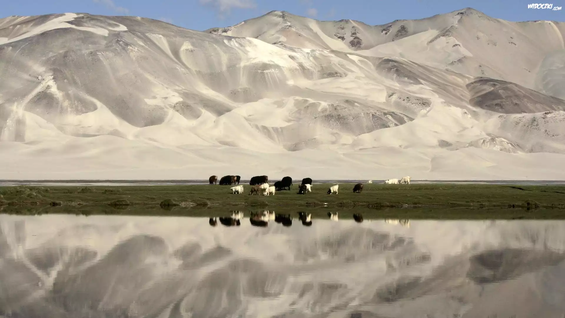 Zdjęcia, Zwierzęta, Pastwisko, Góry, Woda